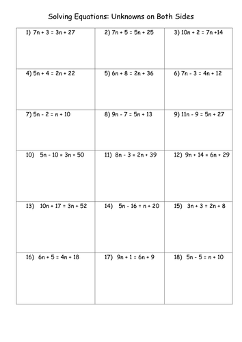 Free worksheets for linear equations (grades 6-9, pre ... - Homeschool Math Worksheets for linear equations Find here an unlimited supply of printable worksheets for solving linear equations, available as both PDF and html files. You can customize the worksheets to include one-step, two-step, or multi-step equations, variable on both sides, parenthesis, and more.