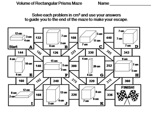 9 Volume of Prisms Activities Your Students Will Love (For 7th grade students, also check out "13 Rockin' Volume of Pyramids & Prisms Activities" .) Volume of Rectangular Prisms Activities: Volume of Rectangular Prisms Escape Room Volume of Prisms Maze Volume of Prisms QR Code Game 6th Grade Volume & Area Task Cards K5 Learning: Volume + Surface Area Worksheets Kahoot Math with Mr.J Video PBS Video Volumes of Rectangular Prisms: Worksheets - Super Teacher Worksheets Volume of a Rectangular Prism On these activities, students will calculate the volumes of the rectangular prisms, using the formula: Volume = length x width x height. Volume of Rectangular Prisms (Basic) Volume of Rectangular Prisms (With Example) Multiply the length times width times height to determine the volume of each rectangular prism.